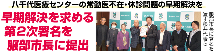 早期解決を求める第2次署名を服部市長に提出